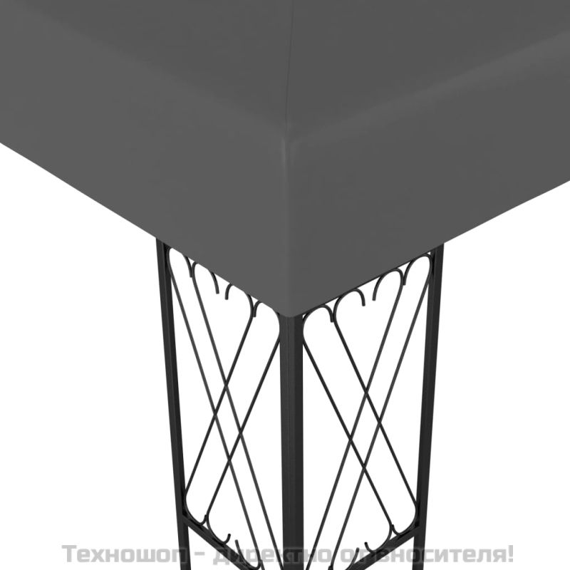 Тази просторна шатра ще бъде елегантно допълнение към вашето външно жилищно пространство, като същевременно предостави на семейството и гостите ви сянка при слънчеви дни. Навесът няма да позволи слънцето и дъждовете да развалят забавленията по време на семейни събирания, барбекюта, следобедни пикници и рождени дни. Шатрата има здрава стоманена конструкция с декоративни кръстосани детайли и полиестерен покрив. Навесът може лесно да се закрепи към рамката на шатрата. ЗАБЕЛЕЖКА: Този продукт НИКОГА не трябва да се използва при лошо време, като бурен вятър, силен дъжд, сняг, буря и т.н.