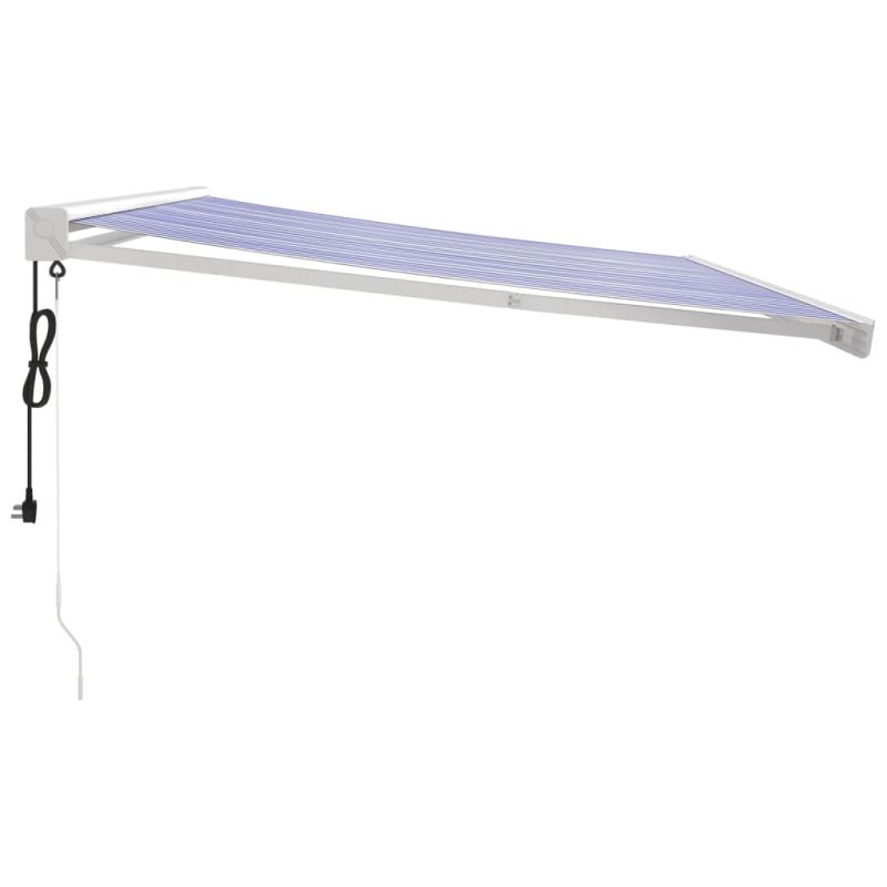 Прибираща се тента синьо и бяло 4x3 м плат и алуминий