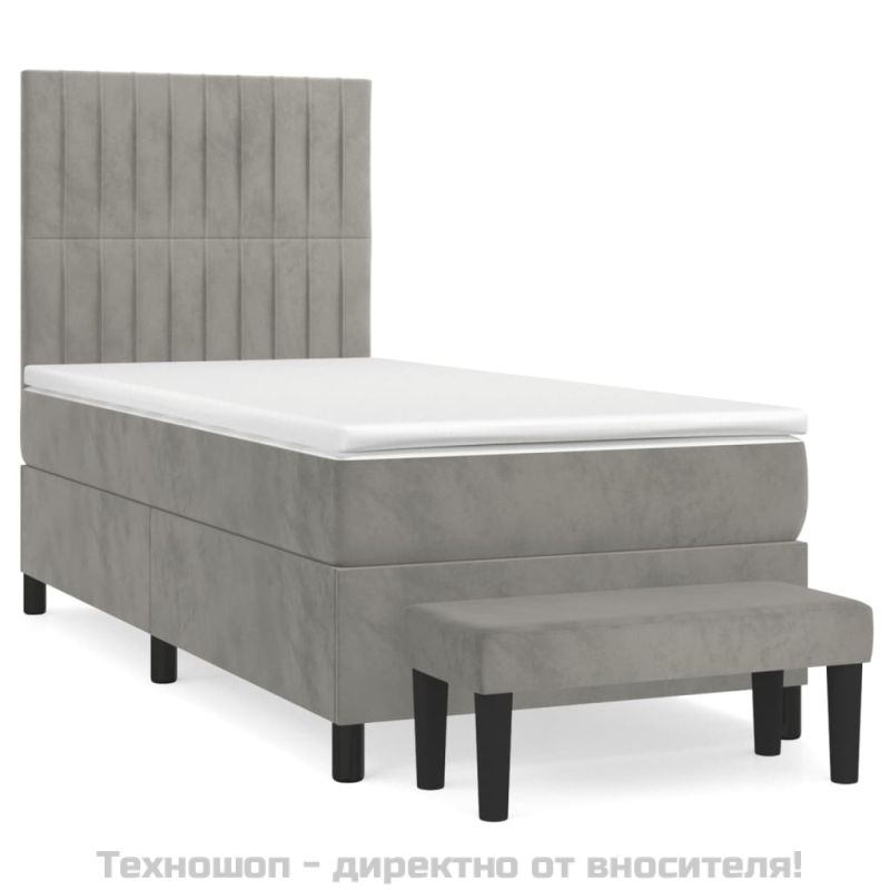 Боксспринг легло с матрак, светлосиво, 80x200 см, кадифе