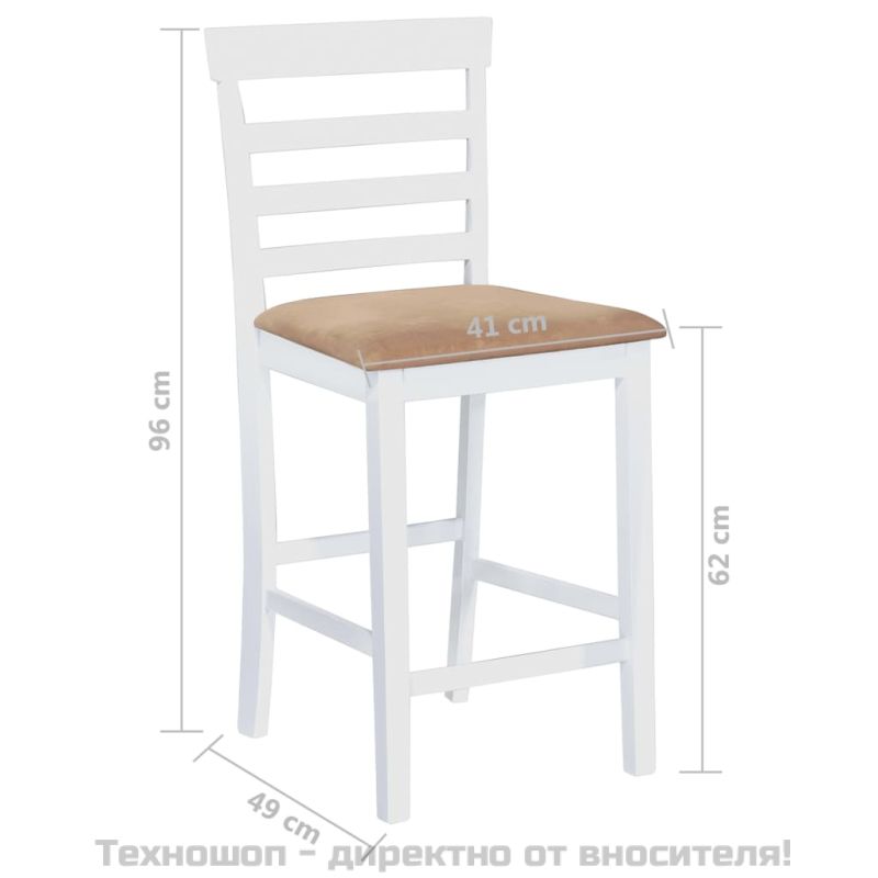 Тези семпли, но стилни бар столове са чудесен избор за вашата кухня или трапезария. Столовете са със здрава и трайна рамка от каучуково дърво, а благодарение на подплатената с пяна седалка са удобни за седене. Тези бар столове ще придадат нюанс на непринуден чар на жилището ви! Доставката включва 2 бар табуретки. Максимално 110 кг на седалка. Съобразете се с риска от открит огън и други източници на силна топлина в близост до продукта.