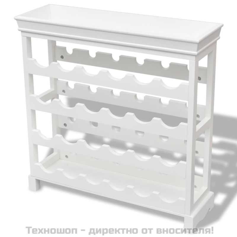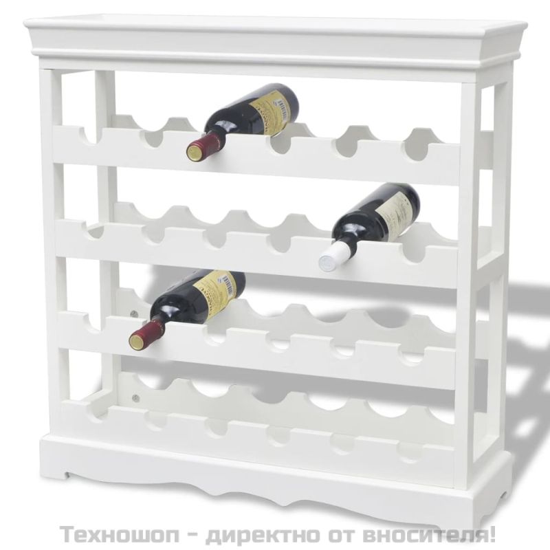 Този висококачествен стелаж за вино в бяло е подходящ за жизнената ви среда и можете да го поставите в хола, в трапезарията или в коридора. Този открит шкаф за вино предоставя достатъчно пространство за съхраняване на винени бутилки. Четирите рафта имат капацитет за подреждане на 24 бутилки вино. Най-горният рафт може да се използва като място за съхранение на чаши за вино, тирбушони и други предмети. Този семпъл, но стилен шкаф за подреждане на винени бутилки е задължителен аксесоар за всеки любител на напитката.