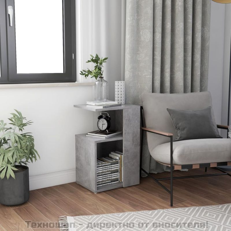 Странична маса, бетонно сива, 36x30x56 см, инженерно дърво