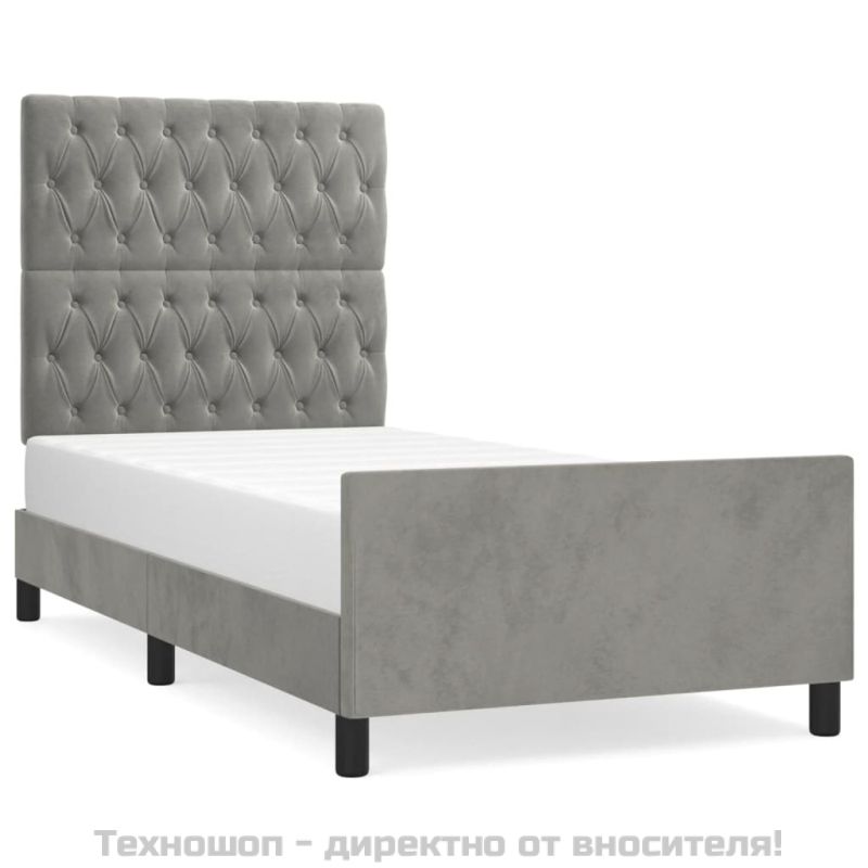 Рамка за легло без матрак, светлосива, 100x200 см, кадифе
