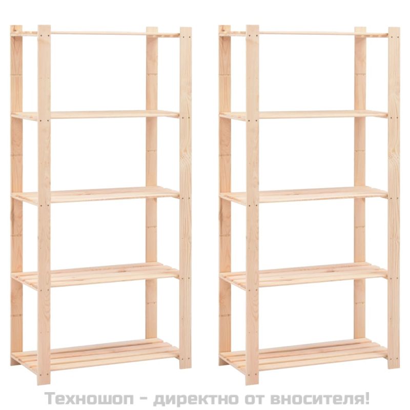 5-етажни стелажи, 2 бр, 80x38x170 см, бор масив, 250 кг