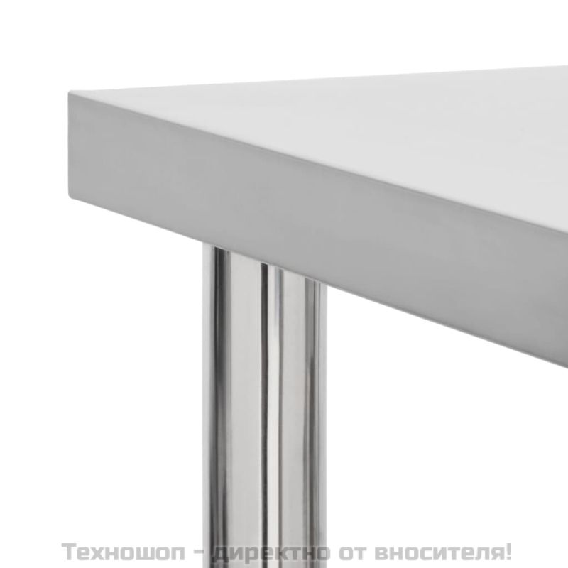 Тази работна маса е идеална за приготвяне и обслужване на храна в кухня, ресторант, училище и търговско помещение. Тази работна маса за гастрономия е изработена от неръждаема стомана, издръжлива за употреба през целия живот. Гладката повърхност е устойчива на корозия и се почиства лесно. Долният рафт предлага допълнително място за съхранение. Работният плот разполага с 4 подвижни колела, за да можете да я местите безпроблемно. Освен това 2 колела имат спирачки, за да задържат масата на място.