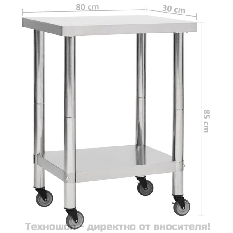 Кухненска работна маса с колелца 80x30x85 см неръждаема стомана