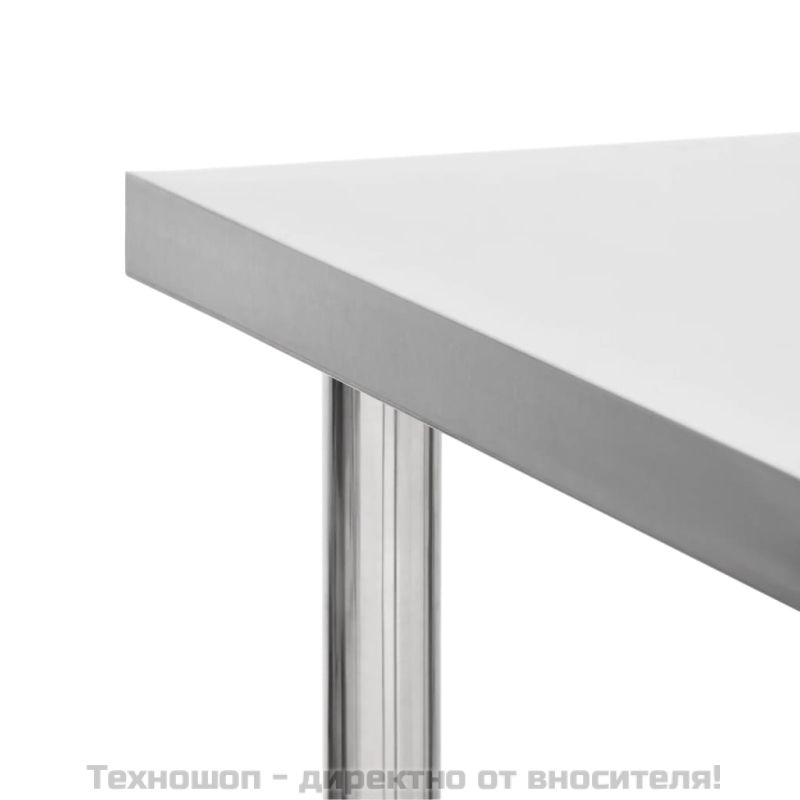 Тази работна маса е идеална за приготвяне и обслужване на храна в кухня, ресторант, училище и търговско помещение. Тази работна маса за гастрономия е изработена от неръждаема стомана, издръжлива за употреба през целия живот. Гладката повърхност е устойчива на корозия и се почиства лесно. Долният рафт предлага допълнително място за съхранение. Работният плот разполага с 4 подвижни колела, за да можете да я местите безпроблемно. Освен това 2 колела имат спирачки, за да задържат масата на място.