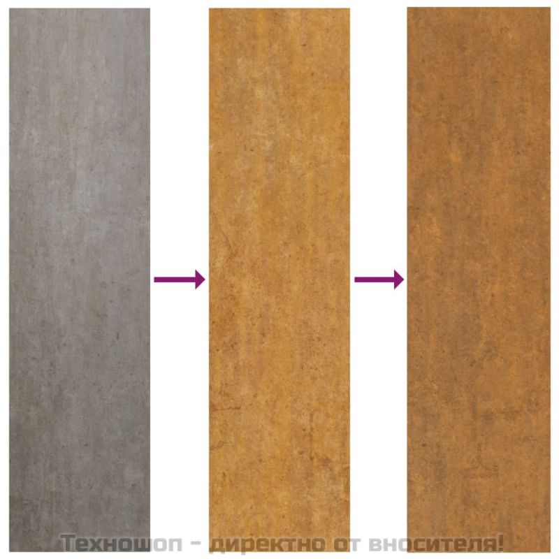 Превърнете празна стена или ограда в шедьовър с тази градинска стенна декорация. Издръжлив материал: Кортенова стомана, известна също като патинираща стомана. Тя е антикорозионна по своята същност. Развива ръждив защитен слой срещу корозия при първото излагане на атмосферни условия. Следователно не е необходимо да я боядисвате. Това може да ви помогне да спестите разходи за поддръжка и ремонт. Отличителният кафяв цвят на кортеновата стомана със сигурност ще привлече вниманието. И накрая, патиниращата стомана е изключително издръжлива и ще издържи изпитанието на времето.Изящен дизайн: Металната декорация за стена е с изрязан дизайн на бамбуци и създава естествена атмосфера в градината ви.Лесна инсталация: Външната стенна декорация се монтира лесно, благодарение на монтажните отвори на гърба. Добре е да се знае:Този продукт все още не е ръждясал и когато го получите ще има нормален метален цвят, но ръждата ще се появи с течение на времето. Можете да ускорите процеса на ръждясване, като го напръскате със сапунена и солена вода. За да запазите дрехите си от петна, избягвайте контакт с образуващия се слой ръжда.