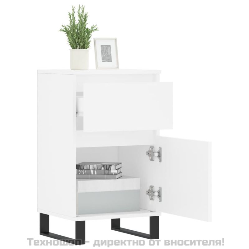 Този модерен сайдборд, отличаващ се с непреходен външен вид, е предназначен да бъде отлично допълнение към вашия дом. Издържлив материал: Инженерната дървесина е с изключително качество с гладка повърхност и също така се отличава със здравина, стабилност и устойчивост на влага. Изработен от инженерно дърво, шкафът за съхранение се почиства лесно с влажна кърпа.Достатъчно място за съхранение: Бюфетът предоставя достатъчно място за съхранение, където да държите различни ваши вещи добре организирани и леснодостъпни.Декоративна функция: Горната част на сайдборда е идеална за излагане на вашите декоративни елементи, рамки за картини и саксийни растения.Железни крака: Железните крака на страничния шкаф осигуряват здравина и стабилност. Внимание:За предотвратяване на преобръщане този продукт трябва да се използва с предоставения анкер за стена.