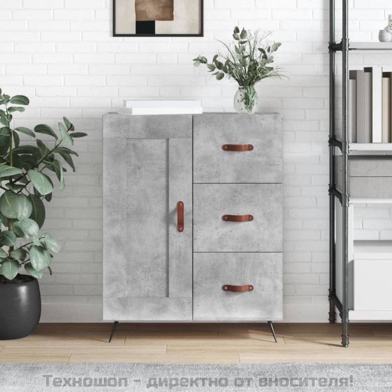 Сайдборд, бетонно сив, 69,5x34x90 см, инженерно дърво