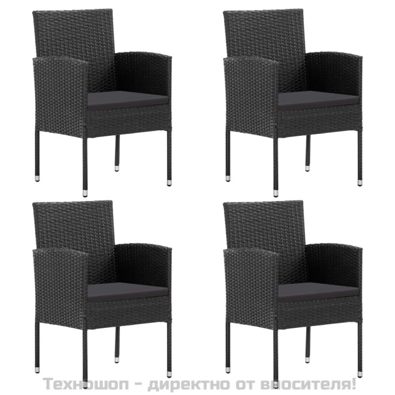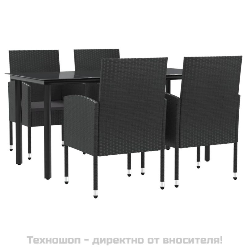 Градински трапезен комплект 5 части черен полиратан и стомана