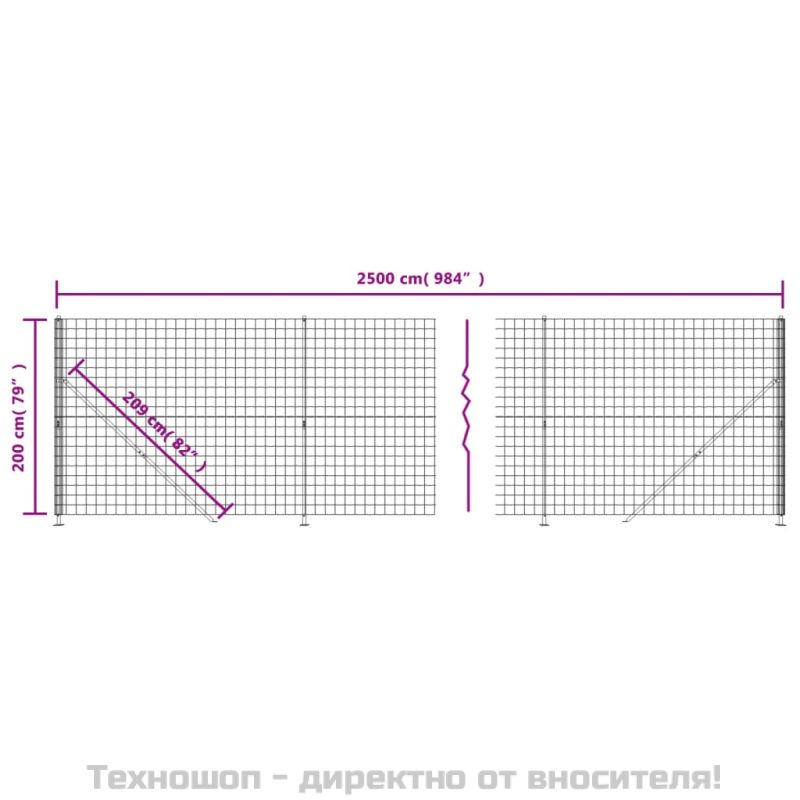Плетена оградна мрежа с фланец, антрацит, 2x25 м