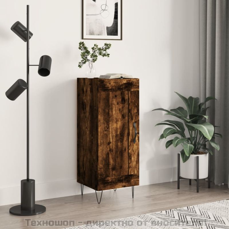 Сайдборд, опушен дъб, 34,5x34x90 см, инженерно дърво