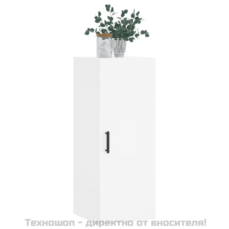 Този стенен шкаф с елегантен дизайн е непреходно допълнение към вашия интериорен декор. Издържлив материал: Инженерната дървесина е с изключително качество с гладка повърхност и също така се отличава със здравина, стабилност и устойчивост на влага. Изработен от инженерно дърво, този шкаф за съхранение е здрав и издръжлив. Достатъчно място за съхранение: Стенният шкаф предоставя достатъчно място за съхранение, където да държите различни ваши вещи добре организирани и леснодостъпни.Функция за монтиране на стена: Стенният шкаф не заема място на пода. Можете лесно да го закачите на стената.Практичен дизайн: Пазете най-важните вещи от прах, като ги скриете зад вратата. В допълнение, дръжката улеснява отварянето на страничния шкаф.Функционален шкаф: Можете също така да поставите този окачен шкаф за съхранение върху бюфет, за да оформите висок шкаф, създавайки допълнително място за съхранение. А семплият дизайн го прави подходящ за вашата всекидневна, спалня, кабинет и всяко друго жилищно пространство. Добре е да се знае:Винтовете и дюбелите за вътрешната стена не са включени. Съветваме ви да намерите и използвате винтове и дюбели, подходящи специално за вашите стени. Ако не сте сигурни, можете да се консултирате с професионалист. Моля, прочетете и следвайте всяка стъпка от инструкциите.