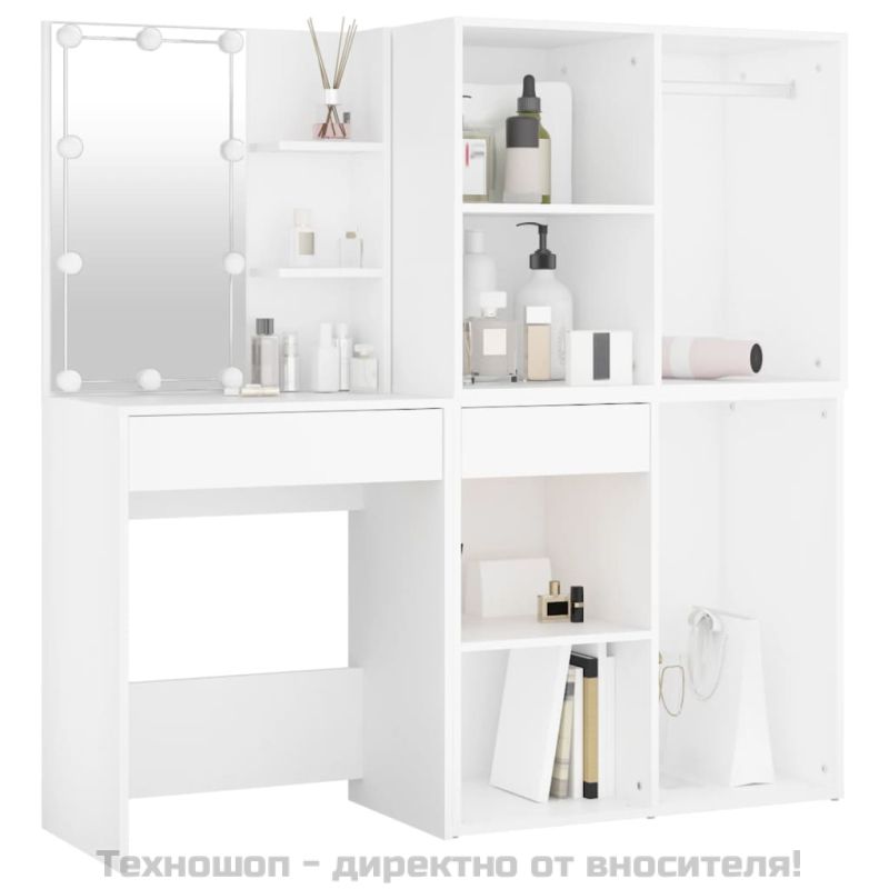 LED тоалетка с 2 шкафа, бяла, инженерно дърво