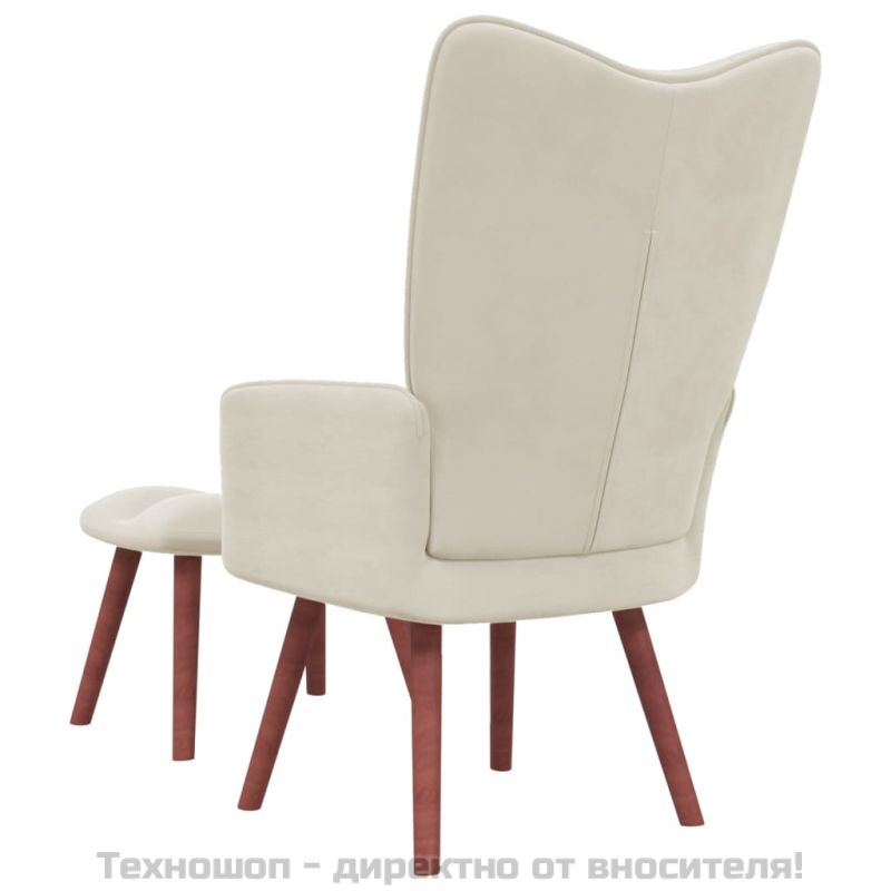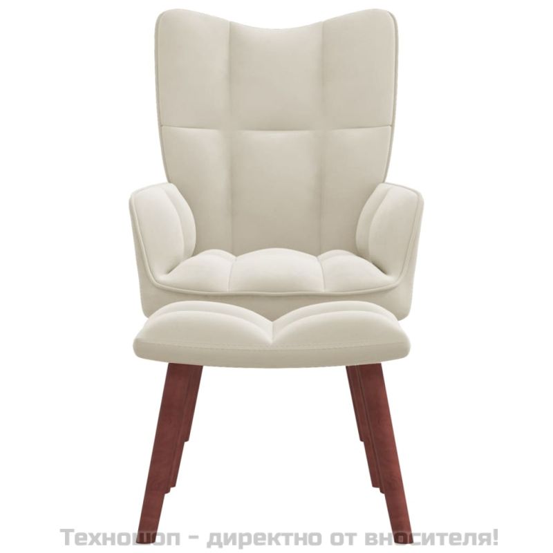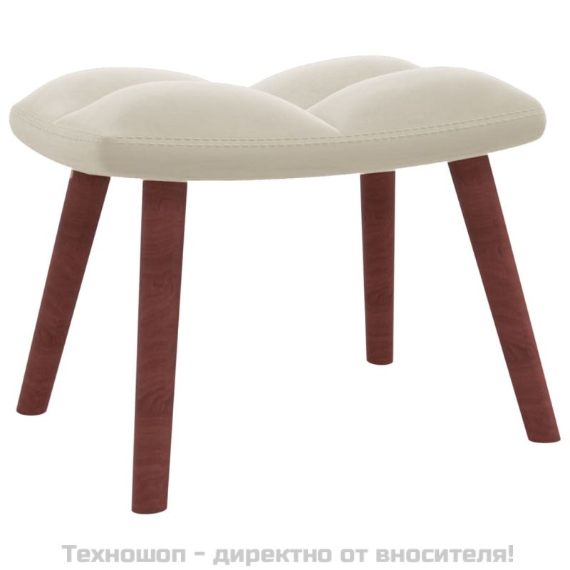 Релакс стол с табуретка, кремаво-бял, кадифе