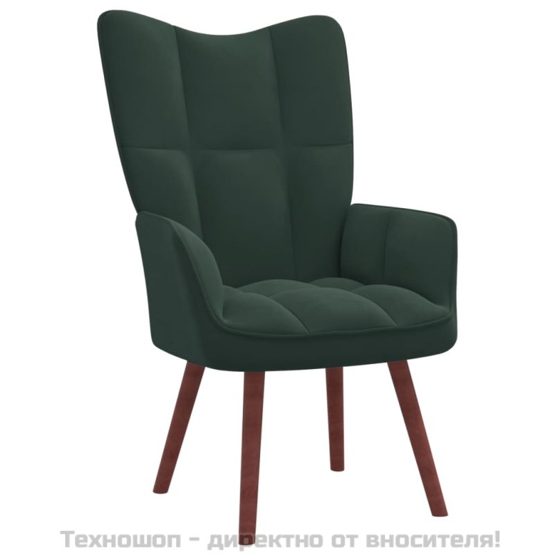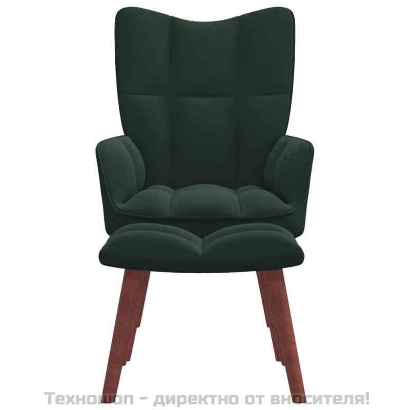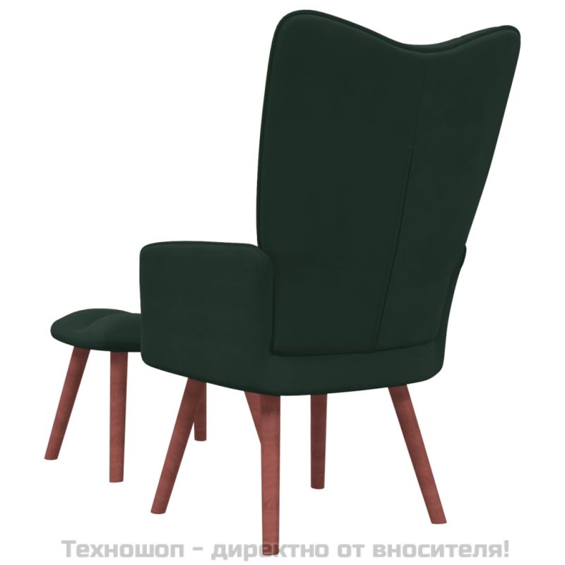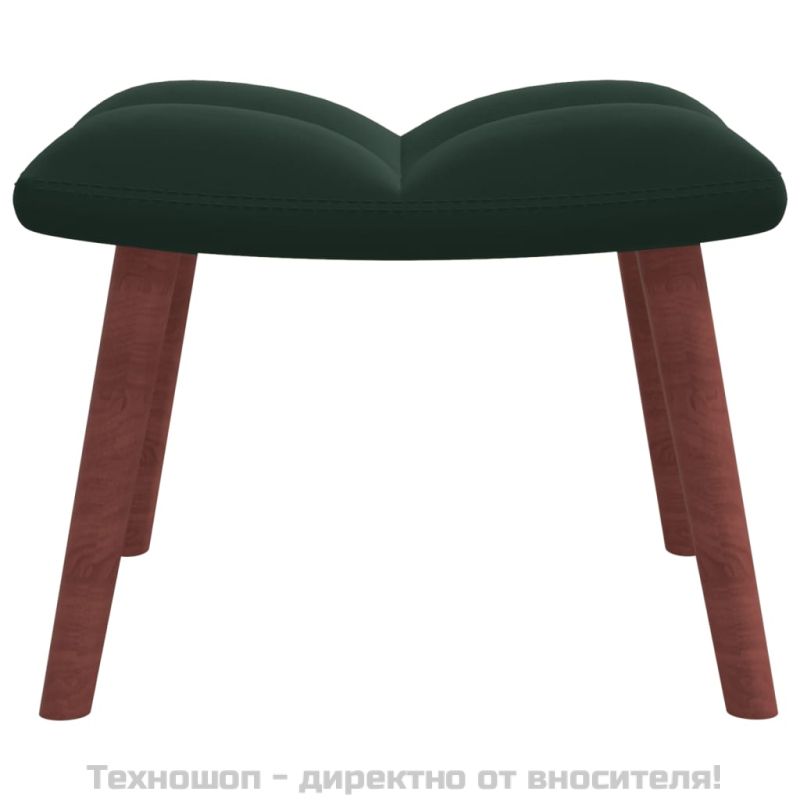 Релакс стол с табуретка, тъмнозелен, кадифе
