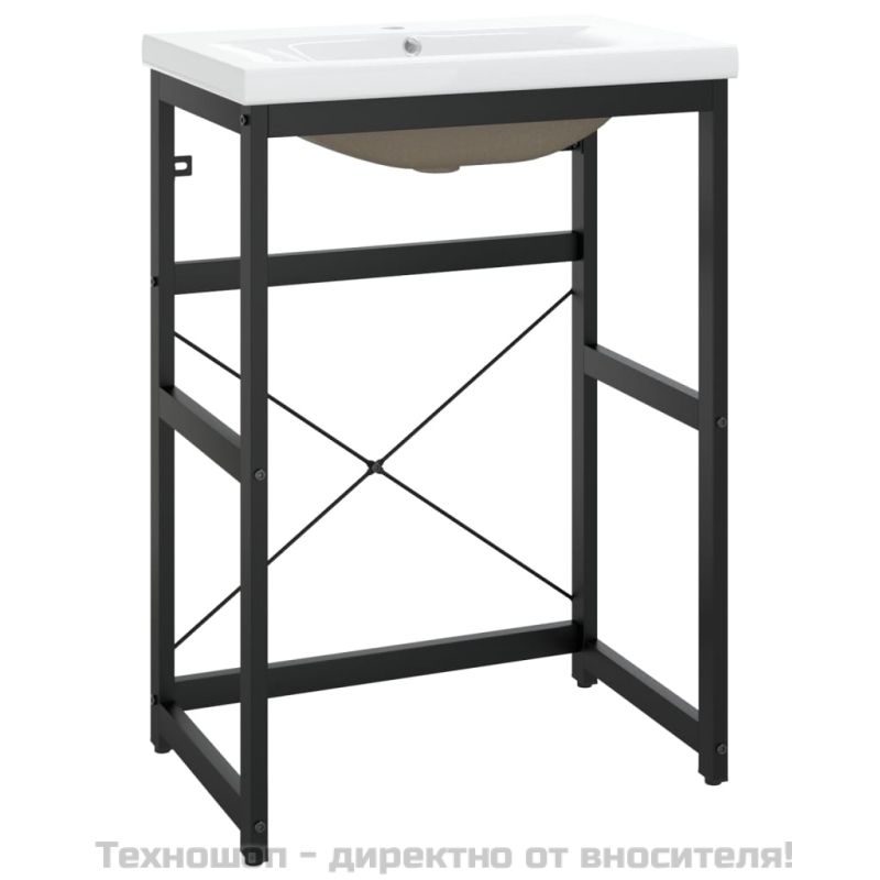 Рамка за мивка за баня с вграден умивалник, черна, желязна