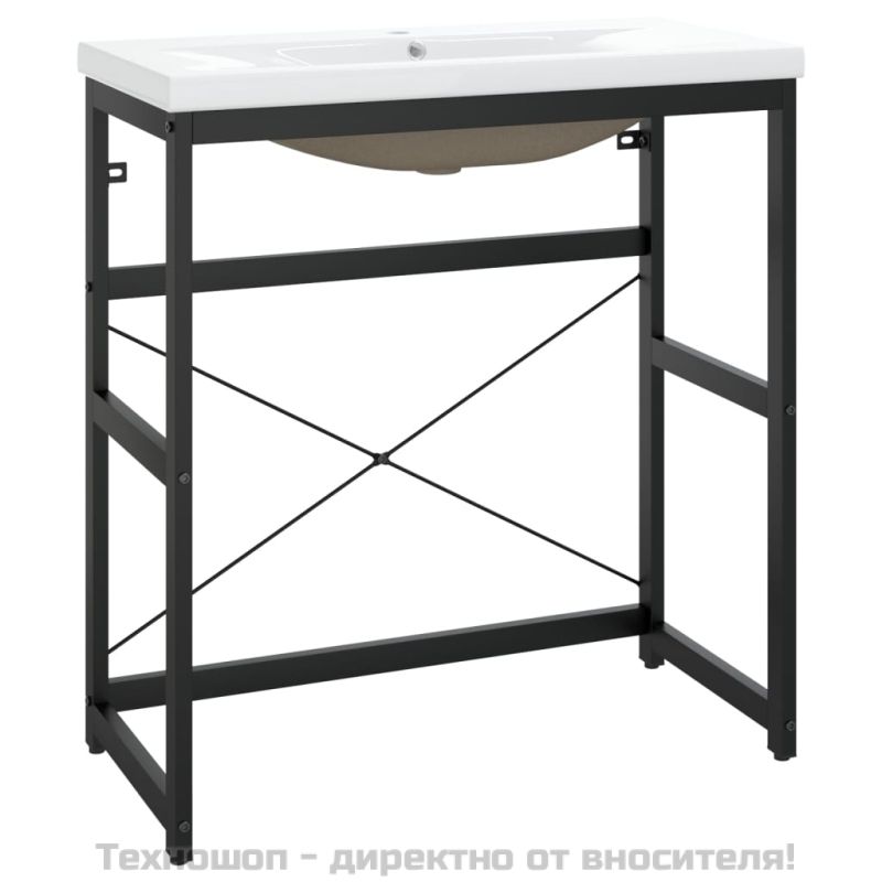 Рамка за мивка за баня с вграден умивалник, черна, желязна