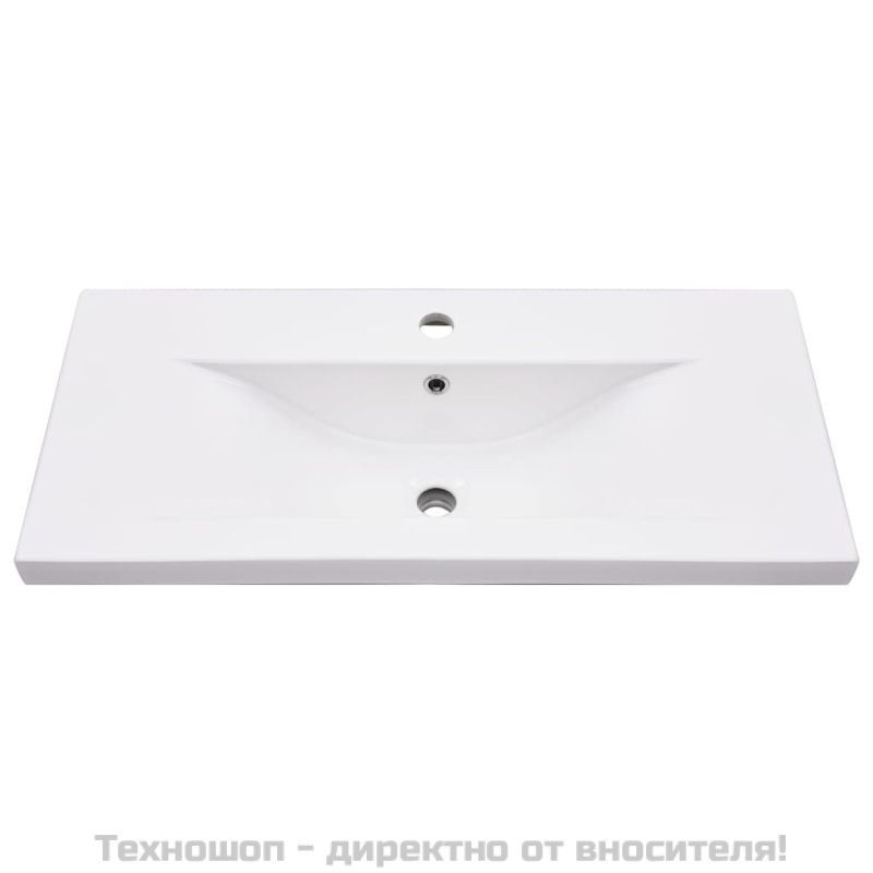 Тази рамка за умивалник за баня с вграден умивалник е идеално решение за вашата баня или тоалетна с изчистена и прибрана визия. Стойката за мивка е изработена от прахово боядисано желязо, което я прави стабилна и издръжлива. Тази рамка за мивка осигурява лесен достъп до кърпи и кошници и създава по-голямо пространство от затворено място за съхранение. Изработена от керамика, мивката може да служи не само за ежедневна употреба, но и като украса във вашето жилищно пространство. Благодарение на модерния и съвременен дизайн, този умивалник определено ще подхожда на всеки декор. Също така е оборудвана с преливник за изтичане на вода, когато се напълни твърде много. Нейната лъскава повърхност носи модерен, но елегантен дизайн. Освен това рамката на умивалника и мивката се почистват лесно с влажна кърпа. Моля, обърнете внимание: Кранът и отводнителната тръба не са включени в доставката. Децата трябва да бъдат наблюдавани, за да се гарантира, че няма да си играят с уреда. Пазете децата далеч от зоната за сглобяване.Внимание: Прочетете внимателно инструкциите преди употреба и ги запазете за по-нататъшни справки.