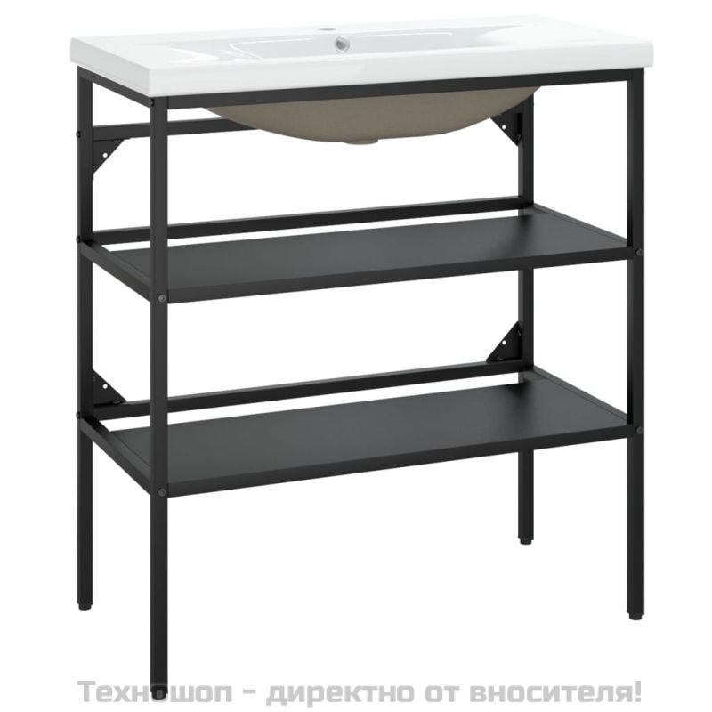 Рамка за мивка за баня с вграден умивалник, черна, желязна
