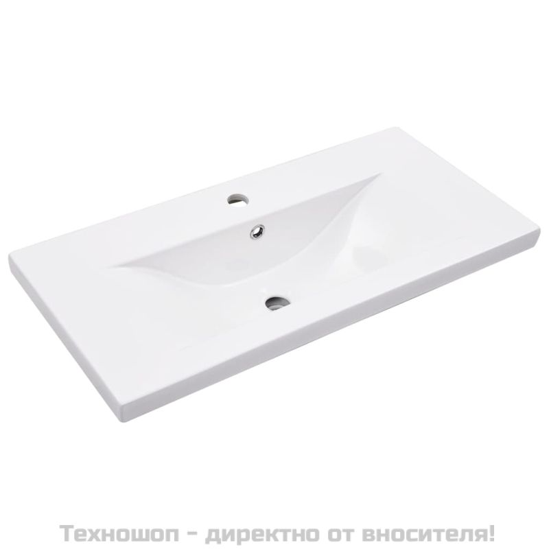 Тази рамка за умивалник за баня с вграден умивалник е идеално решение за вашата баня или тоалетна с изчистена и прибрана визия. Стойката за мивка е изработена от прахово боядисано желязо, което я прави стабилна и издръжлива. Тази рамка за мивка осигурява лесен достъп до кърпи и кошници и създава по-голямо пространство от затворено място за съхранение. Изработена от керамика, мивката може да служи не само за ежедневна употреба, но и като украса във вашето жилищно пространство. Благодарение на модерния и съвременен дизайн, този умивалник определено ще подхожда на всеки декор. Също така е оборудвана с преливник за изтичане на вода, когато се напълни твърде много. Нейната лъскава повърхност носи модерен, но елегантен дизайн. Освен това рамката на умивалника и мивката се почистват лесно с влажна кърпа. Моля, обърнете внимание: Кранът и отводнителната тръба не са включени в доставката. Децата трябва да бъдат наблюдавани, за да се гарантира, че няма да си играят с уреда. Пазете децата далеч от зоната за сглобяване.Внимание: Прочетете внимателно инструкциите преди употреба и ги запазете за по-нататъшни справки.