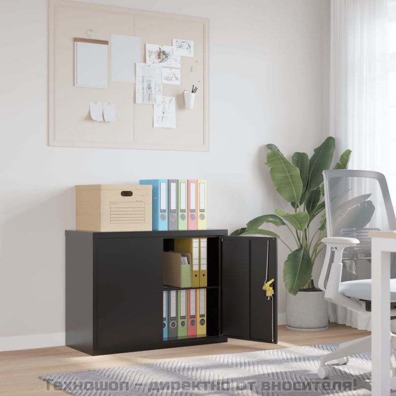 Шкаф за папки черен 90x40x70 см стомана
