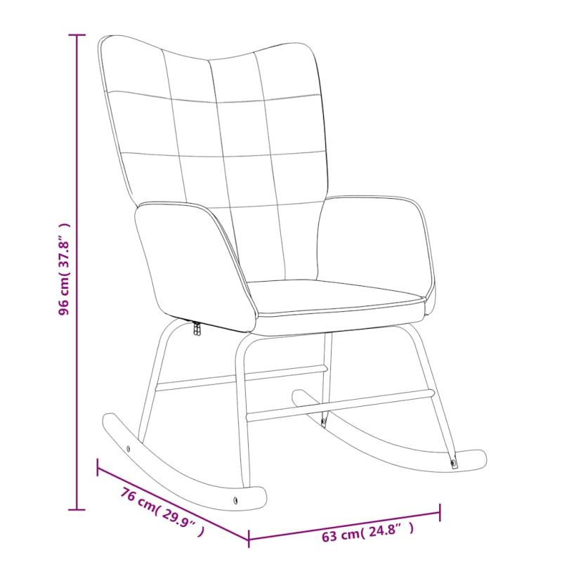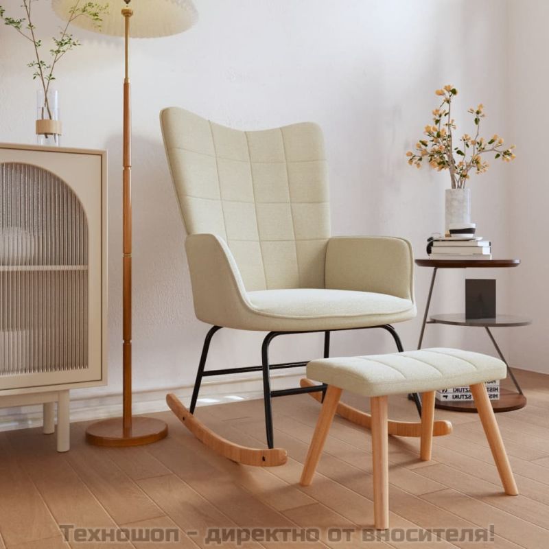 Този люлеещ се стол с табуретка е с шикозен и елегантен дизайн и ще добави модерна нотка към вашия декор. Този релакс стол с няколко блока е естетически издържан. Благодарение на дебело подплатената му пяна, тапицирана с мек на допир текстил, можете да се насладите на оптимален комфорт по време на седене. Благодарение на дизайна с дълги шини за люлеене фотьойлът няма да се преобърне лесно. В допълнение, поддържан от стоманена рамка и крака, както и от дървени шини за люлеене, столът за всекидневна с табуретка е стабилен и издръжлив. Максимално 110 кг на седалка. Съобразете се с риска от открит огън и други източници на силна топлина в близост до продукта.