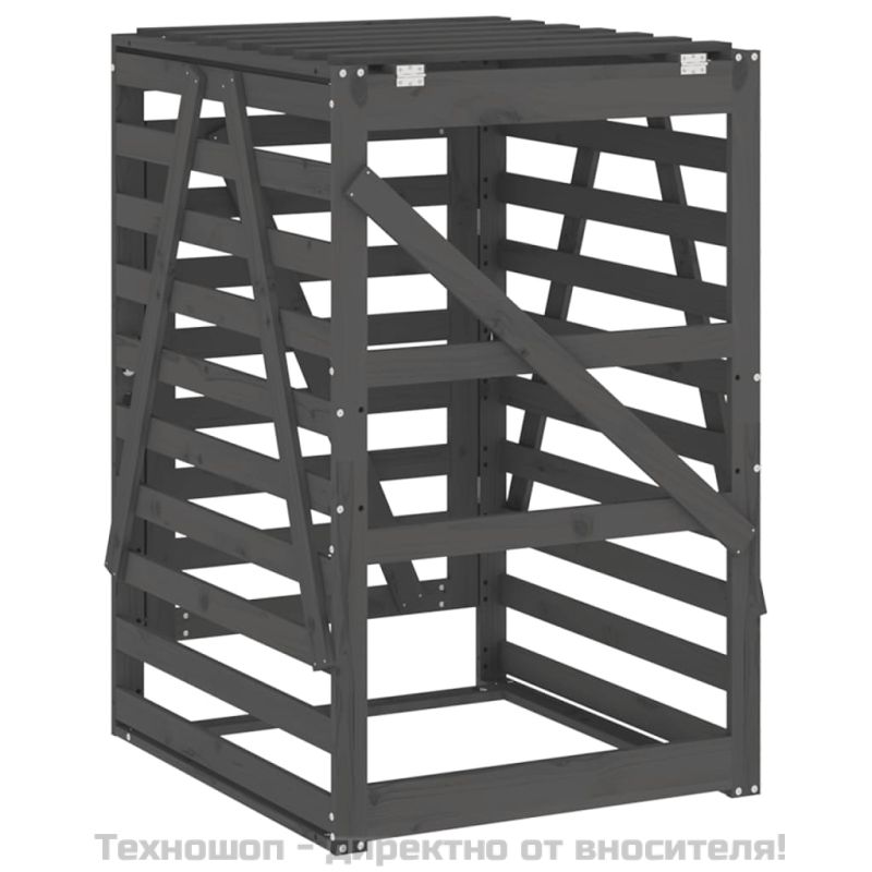 Контейнер за съхранение на кош сив 84x90x128,5 см бор масив