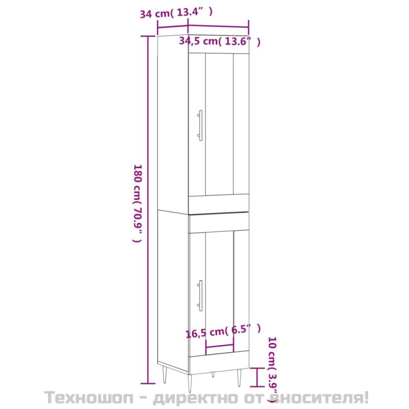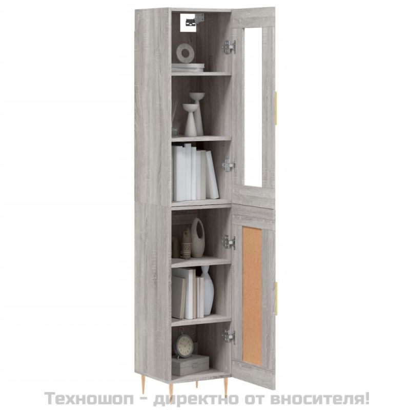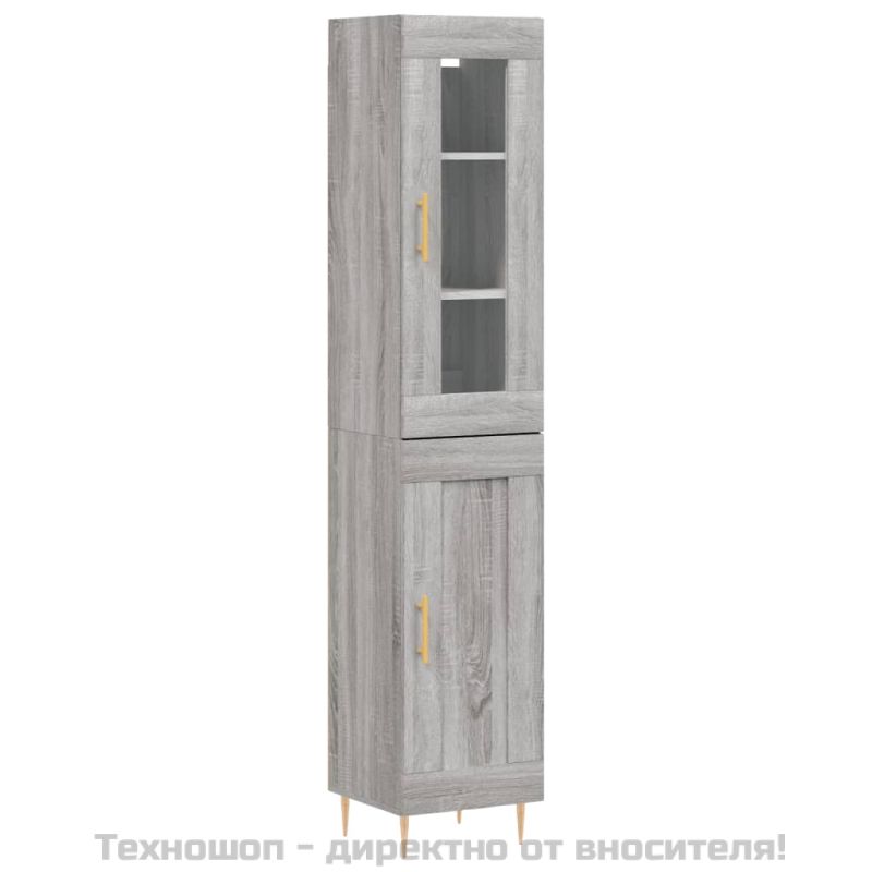 Висок шкаф, сив сонома, 34,5x34x180 см, инженерно дърво