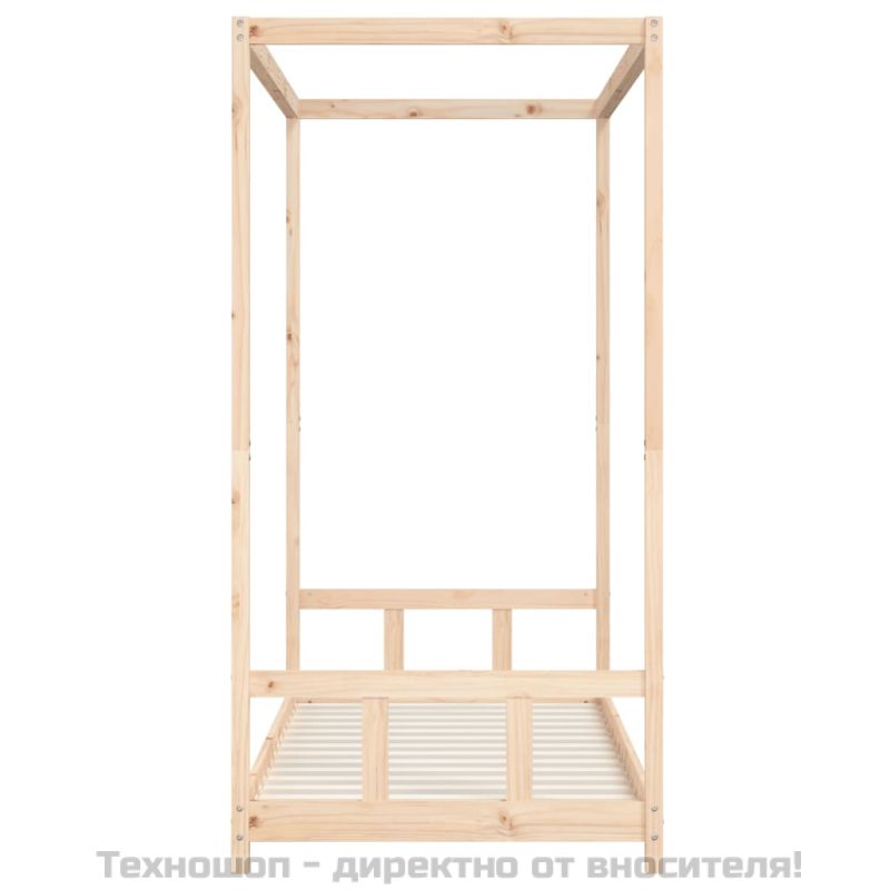 Създайте забавно пространство за вашето мъниче с тази фантастична дървена рамка за детско легло! Борово дърво масив: Рамката на детското легло е изработена от борово дърво масив. Масивната борова дървесина е красив естествен материал. Боровата дървесина е с продълговати шарки, а чеповете придават на материала характерния му рустик вид.Здрави ламели: Детското легло има дървени ламели за стабилна опора, вентилация и стабилност.Дизайн на легло с балдахин: Това легло за малко дете е изящно проектирано с рамка за легло с балдахин, където можете да закачите завеси за легло, за да създадете уединение за вашето дете.Внимателен дизайн: Височината на детското единично легло е проектирана да бъде ниско до земята, което улеснява детето ви да влиза и става от леглото. ПРЕДУПРЕЖДЕНИЕ. Не поставяйте това детско легло в близост до източници на топлина, прозорци и други мебели. ПРЕДУПРЕЖДЕНИЕ. Не използвайте това детско легло, ако някоя част е счупена, скъсана или липсва.