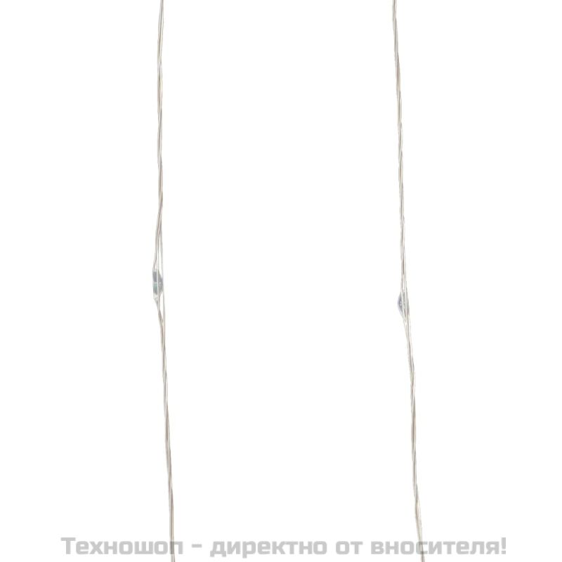 Този LED стринг е перфектен за използване като осветително допълнение към всеки декоративен проект. Подходящ е за Коледа, партита, сватби и други празници. Стрингът е снабден с 300 светодиода, създаващи многоцветно светлинно изпълнение. Има 8 различни светлинни ефекта: комбиниран режим, вълни, последователен режим, бавно светещ режим, мигащ, бавно избледняващ режим, мигащо и непрекъснато осветление. Благодарение на включеното дистанционно управление (батерията не е включена. Използвайте CR2025 бутонна батерия) можете лесно да управлявате осветлението. Стринг осветлението с медна тел може лесно да се огъне във всяка форма, която желаете. Това е чудесен декоративен аксесоар за осветяване на вътрешни и външни пространства, като вашите градини, ограда, порта, коледни елхи и др. Забележка:Продуктът има USB конектор, но не е включен сертифициран източник на захранване от 5V USB Този продукт се захранва с DC 5V, но сертифицираният 5V USB източник на захранване не е включен в комплекта. По-високото напрежение може да доведе до прегряване на устройството и да доведе до повреда на устройството и потенциален риск от прегряване и пожар. Съхранявайте новите и използваните батерии далеч от деца.