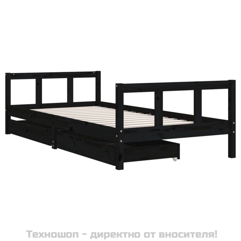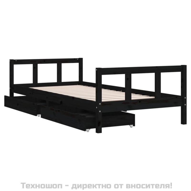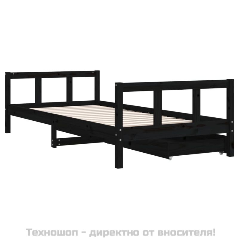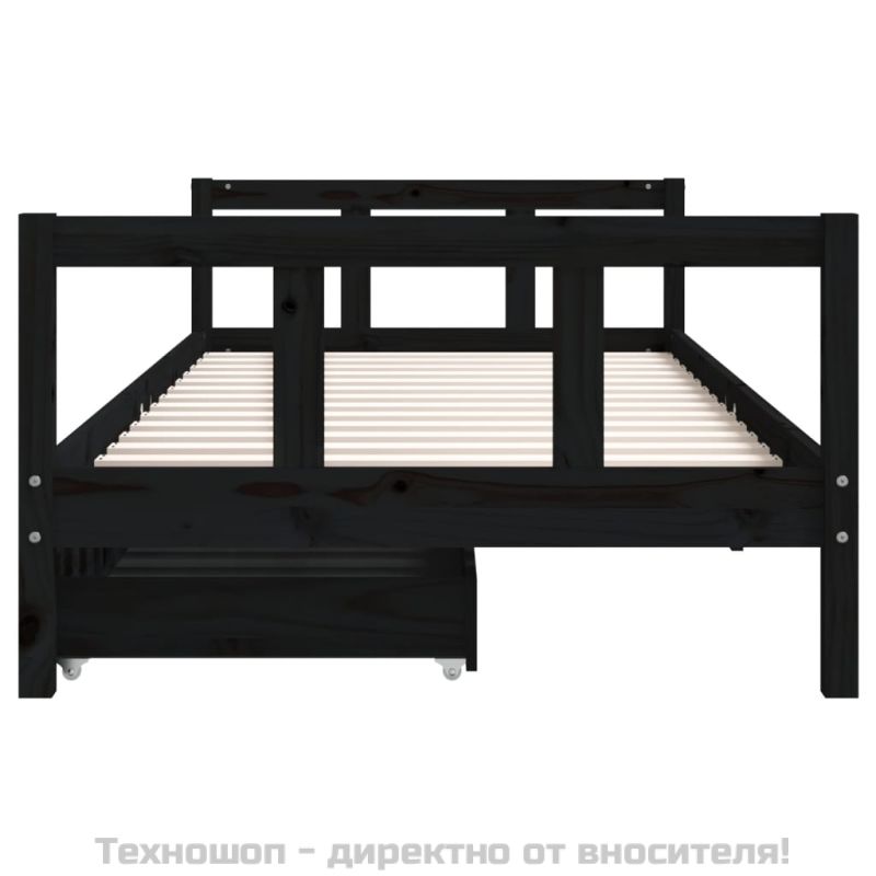 Рамка за детско легло с чекмеджета черна 90x200 см бор масив