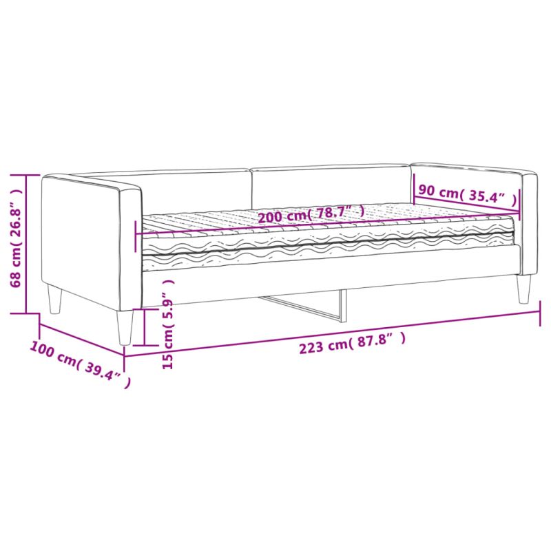 Канапе с матрак, черно, 90x200 см, плат