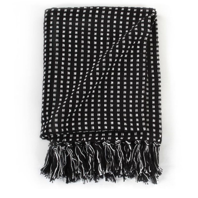 Декоративно одеяло, памук, каре, 220x250 см, черно