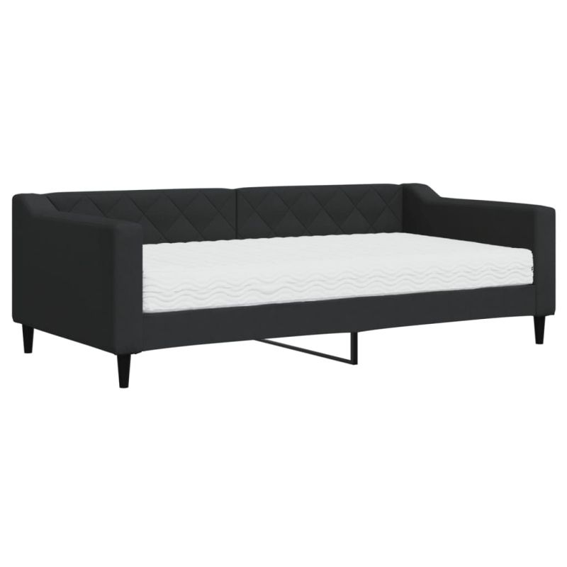 Канапе с матрак, черно, 90x190 см, плат