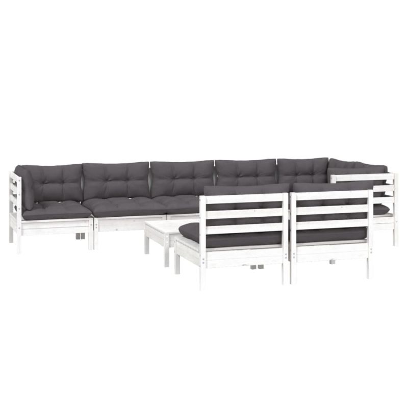 Градински лаундж комплект с възглавници 9 части бял бор масив