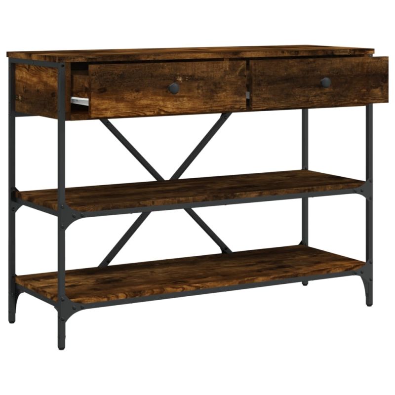 Конзолна маса с чекмеджета и рафтове опушен дъб инженерно дърво