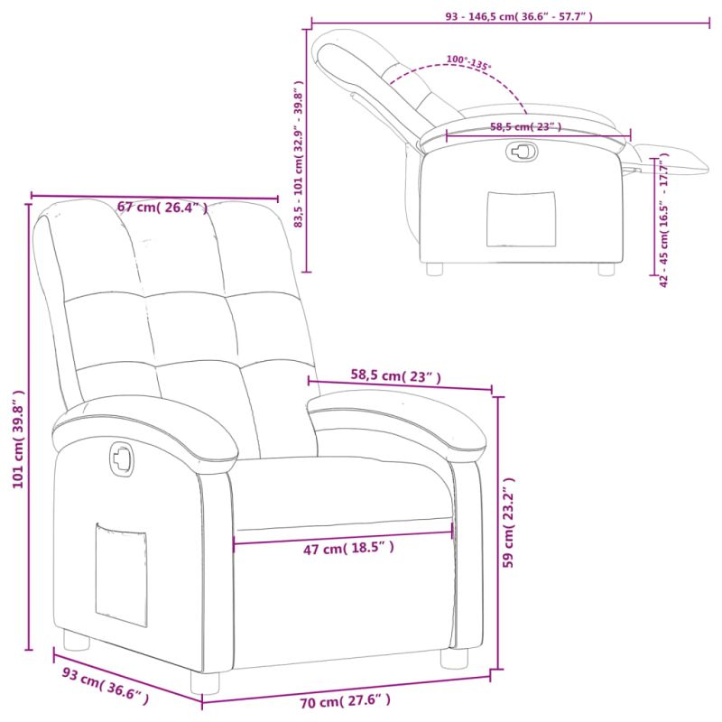 Облегнете се и се отпуснете в този изключително комфортен наклоняем стол! Функция за ръчно накланяне: Този накланящ се стол има дръжка от дясната страна. Можете ръчно да настроите поставката за крака и облегалката до произволна позиция според вашето удобство с просто издърпване на дръжката. Тази функция позволява максимален наклон от 135 градуса. Освен това облегалката може бързо да се върне на първоначалното си място с лесно издърпване на дръжката.Удобно седене: Дебело подплатената седалка, облегалката и широките подлакътници, покрити с текстил, осигуряват уютно и топло усещане, което ви кара да се чувствате като в прегръдка, докато седите. Тъканта се отличава със семпъл и изчистен вид и е дишаща и издръжлива.Удобен страничен джоб: Този фотьойл има страничен джоб, за да държите основните си вещи леснодостъпни.Здрава и стабилна рамка: Рамката, изработена от дърво и метал, осигурява здрава структура и стабилност. Този накланящ се фотьойл е удобен и издръжлив. Максимално 110 кг на седалка.