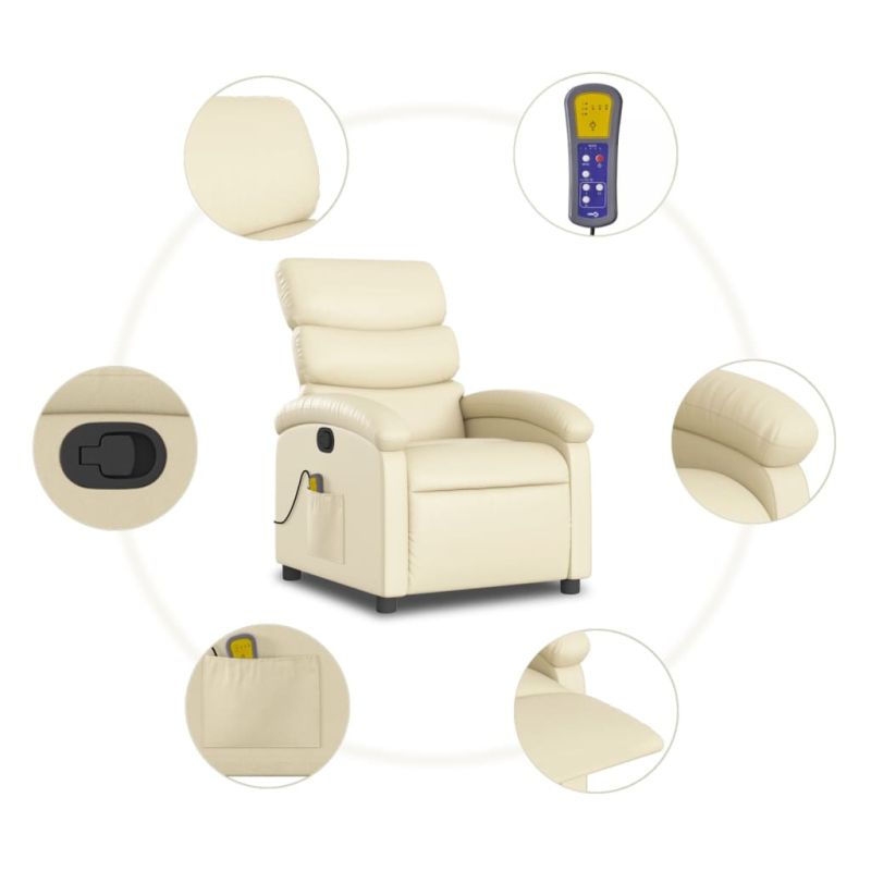 Масажен стол реклайнер, кремав, изкуствена кожа