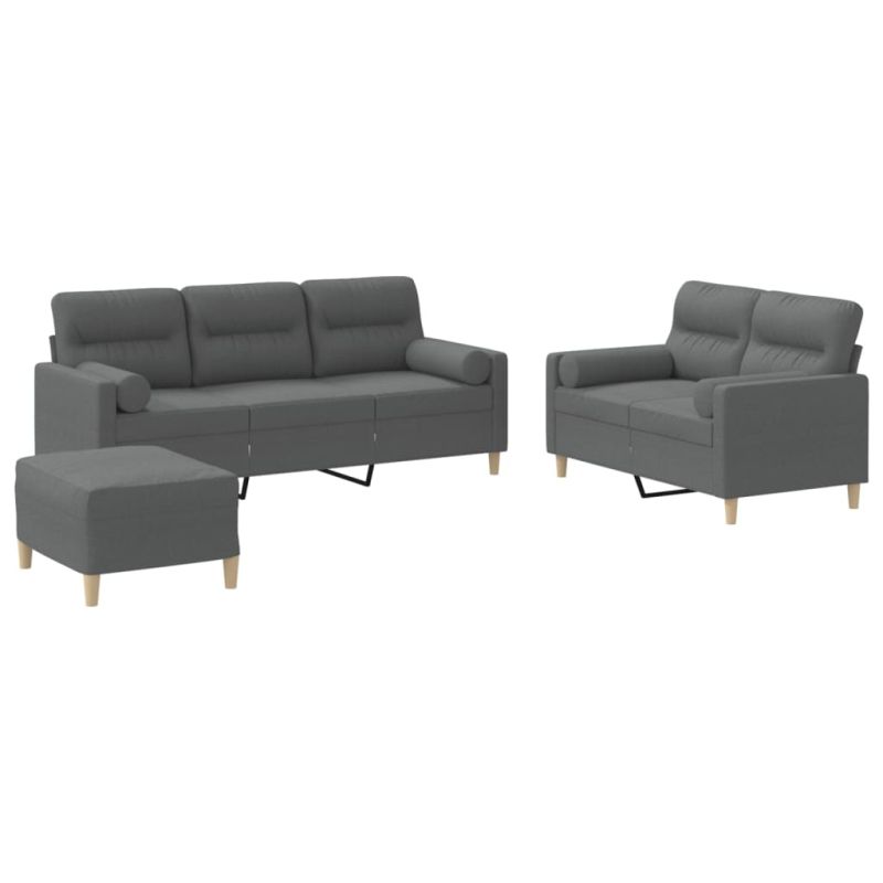 Комплект дивани 3 части с възглавници тъмносив текстил