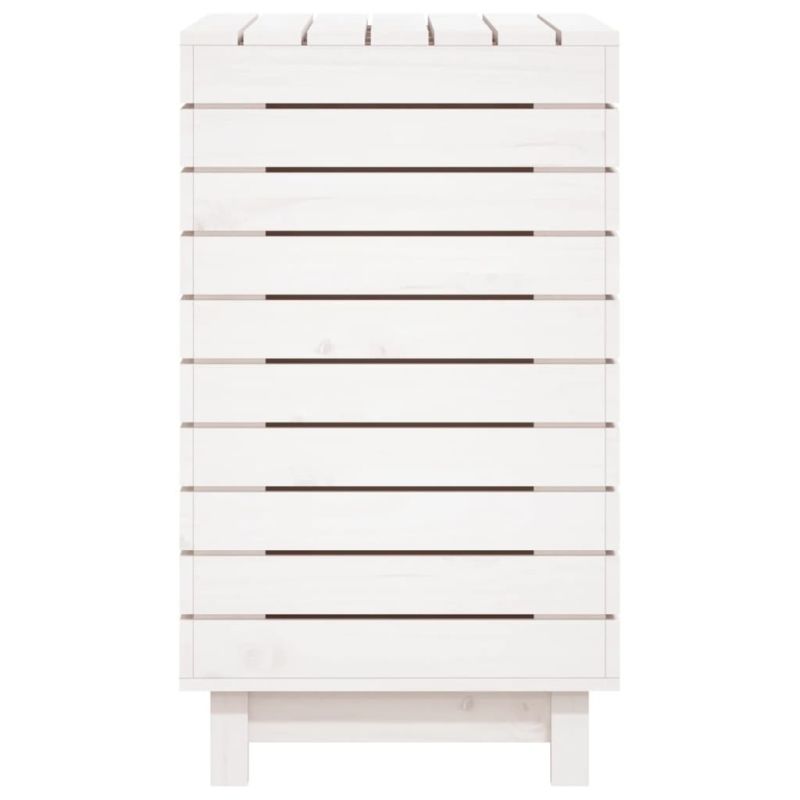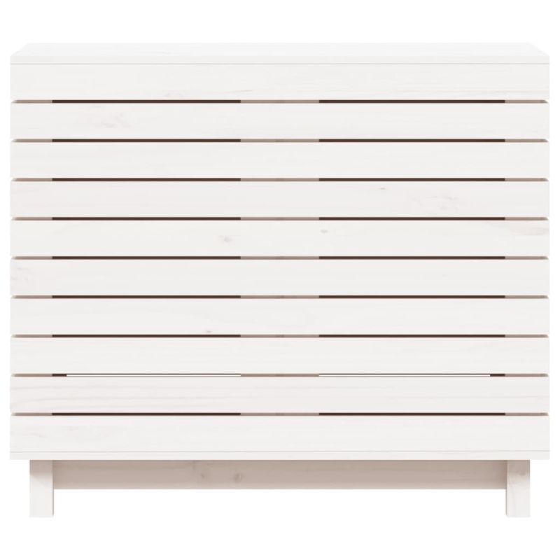 Кош за пране, бял, 88,5x44x76 см, борово дърво масив
