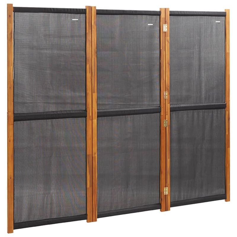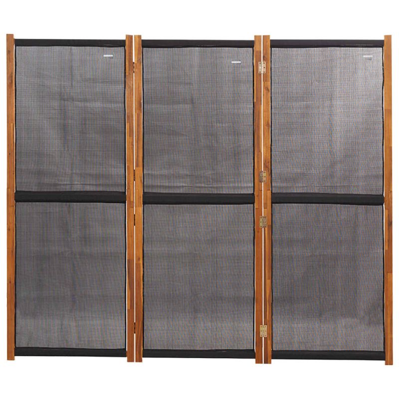Този параван за стая е идеален за създаване на отделна уединена зона или секция във вашето вътрешно или външно жилищно пространство. Първокласен материал: Масивното акациево дърво е красив естествен материал. Акациевото дърво е тропическа твърда дървесина, която е плътна, здрава и издръжлива. Здравият текстил също е устойчив на атмосферни влияния и лесен за почистване.Сгъваем дизайн: Този панелен параван може лесно да се сгъне, за да спести място, когато не се използва.Многофункционален: Този параван за уединение може да се използва за декорация, както и за преграда. Той е идеален за отделяне на зона за уединение или създаване на допълнително пространство.