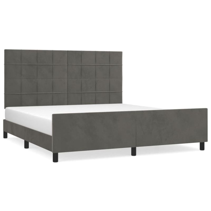 Осигурете си по-добър спокоен нощен сън с тази рамка за легло с табла за глава! Тя представлява приветливо допълнение към всяка спалня. Меко кадифе: Кадифето е мека и луксозна материя, която се отличава с гъста купчина равномерно отрязани влакна за гладка повърхност. Кадифената тъкан се отличава с меко усещане, което я прави приятна на допир.Регулируема височина: Горната табла за легло се регулира на височина според вашите предпочитания.Поддържащи крака: Леглото се поддържа от здрави крака, които осигуряват неговата стабилност, безопасност и твърдост.Ламели от шперплат: Ламелите от шперплат осигуряват добро разпределение на теглото, като гарантират, че матракът остава на място при всяко завъртане на тялото ви по време на сън.Отлична опора: Горната част на леглото ви осигурява отлична опора за гърба, докато седите в леглото, за да четете или гледате телевизия. Забележка:Доставката включва само рамка за легло. Матракът не е включен. Можете да проверите в нашия магазин за подходящи матраци.Всеки продукт се доставя с ръководство за сглобяване в кашона за лесно сглобяване.