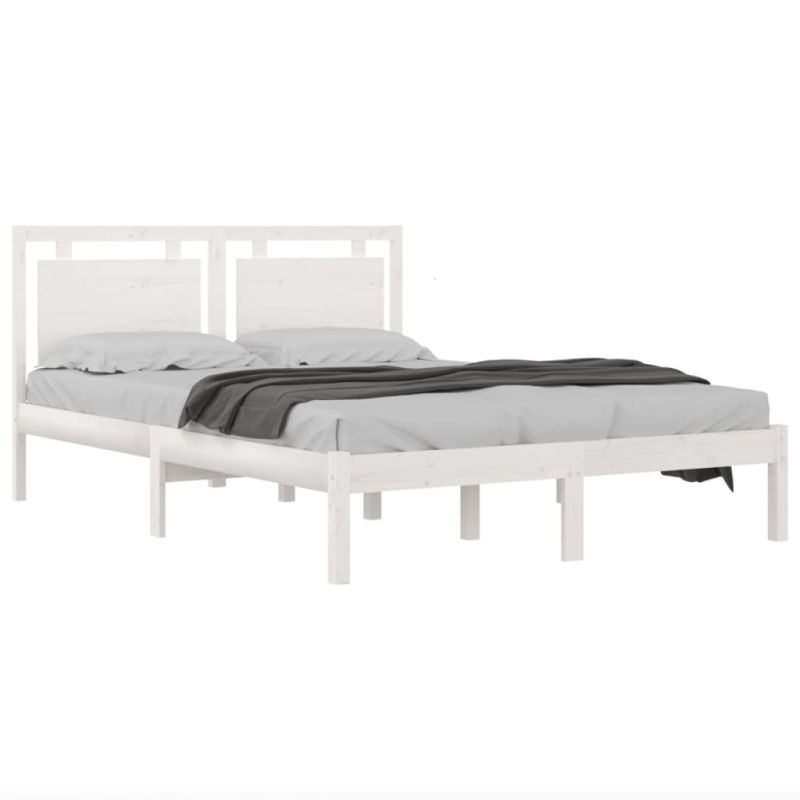 Рамка за легло, бяла, дърво масив, 140x190 см