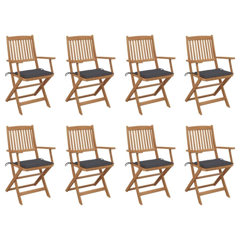 Сгъваеми градински столове с възглавници 8 бр акация масив