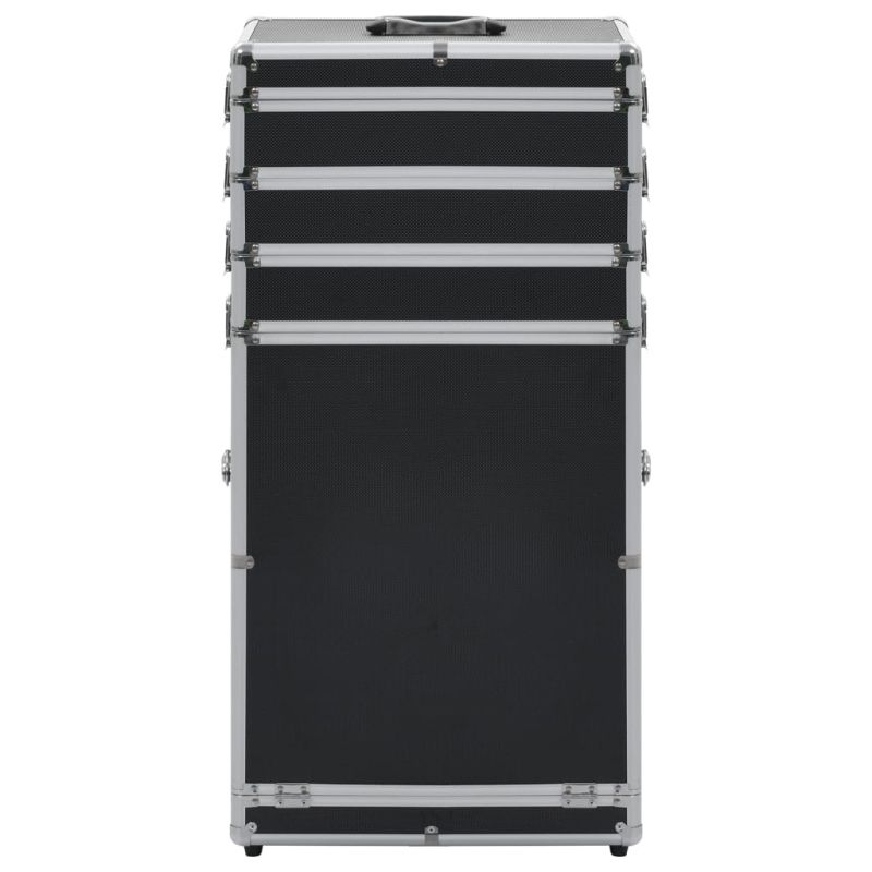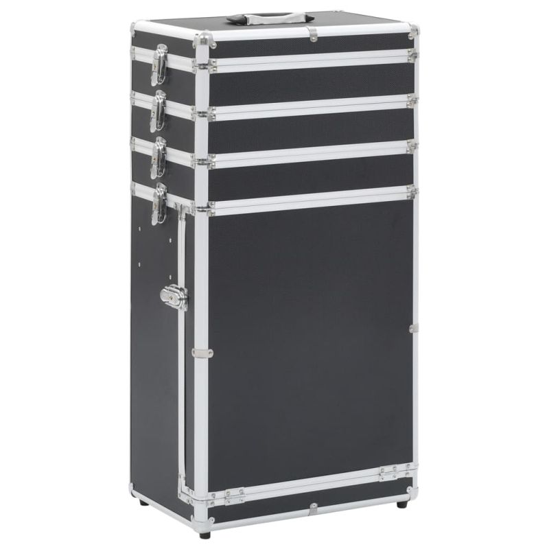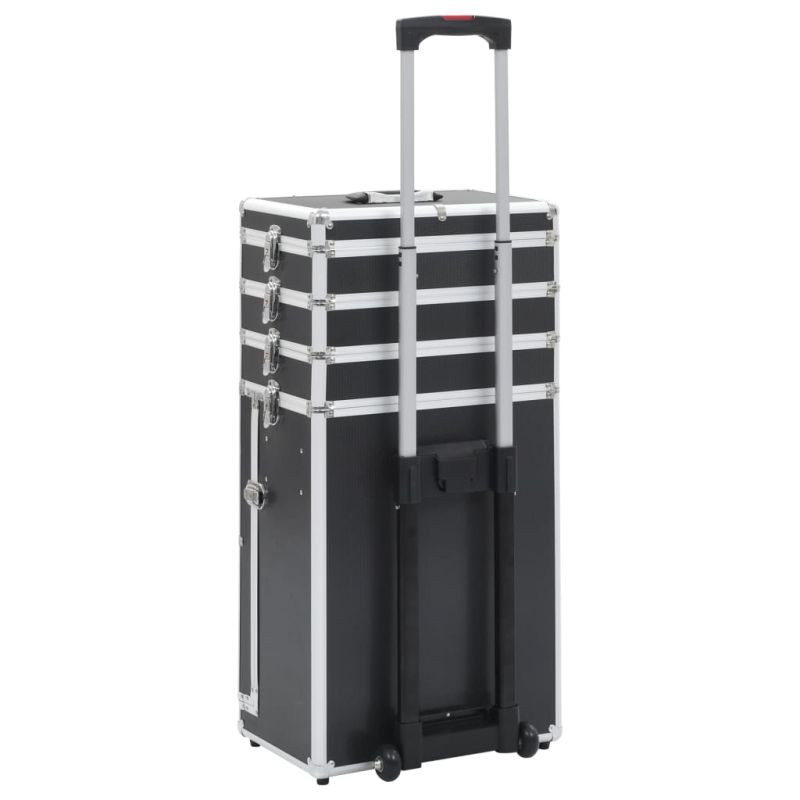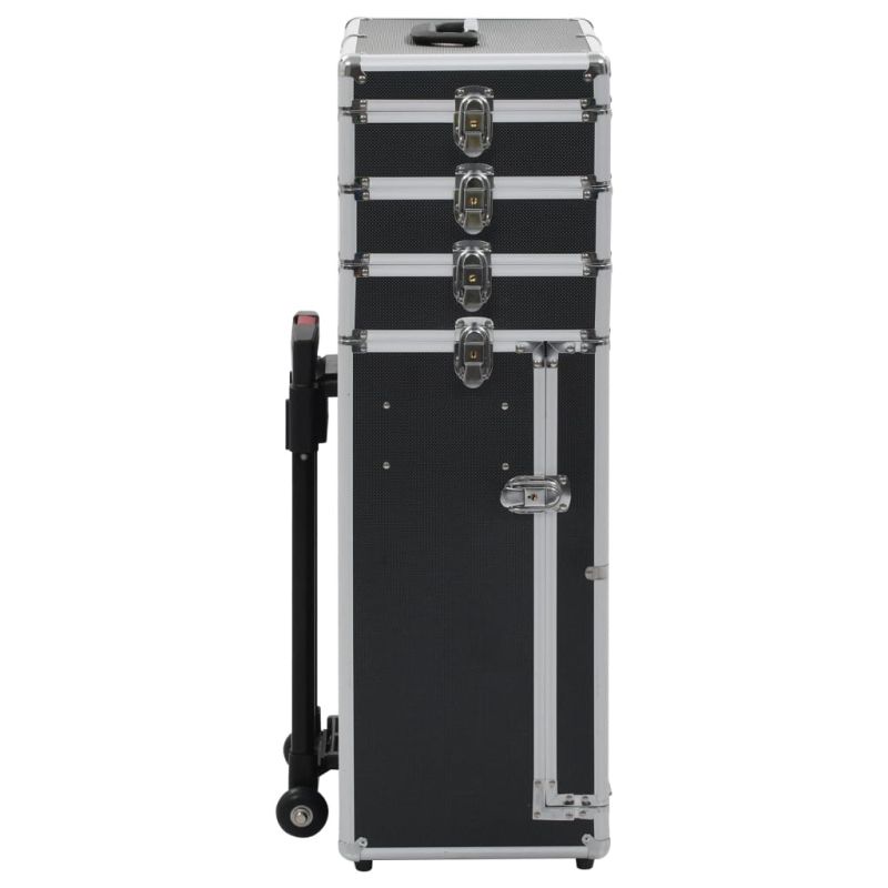Куфар за грим на колелца, алуминий, черен