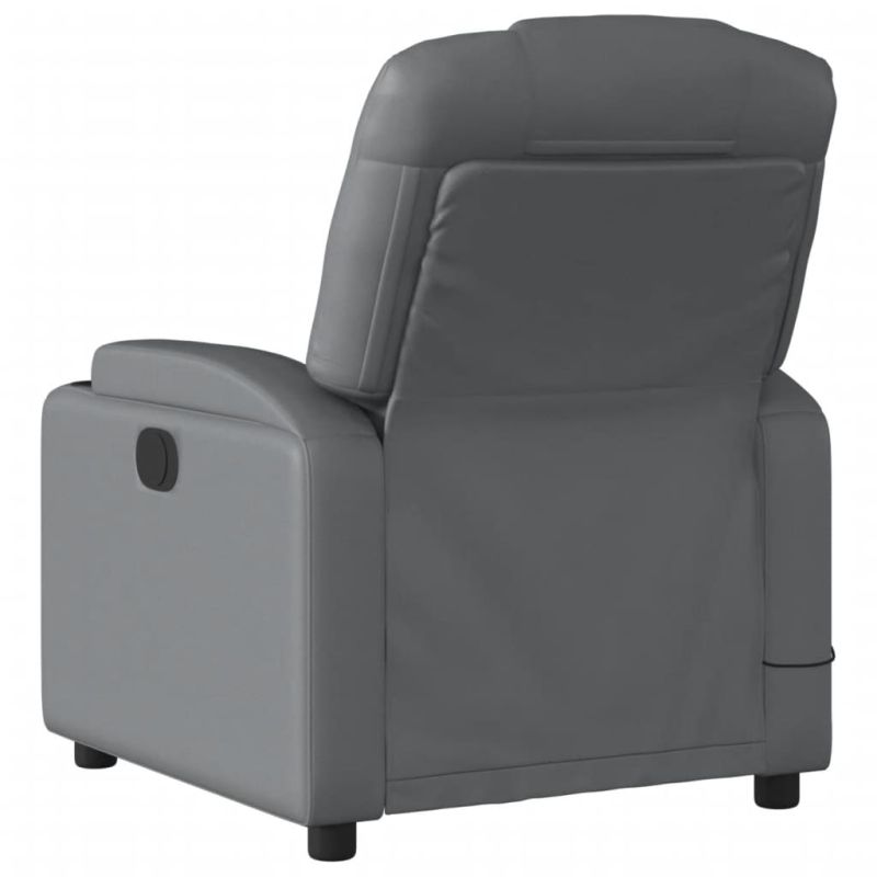 Облегнете се и се отпуснете в този изключително комфортен масажен наклоняем стол! Функция за ръчно накланяне: Този накланящ се стол има дръжка от дясната страна. Можете ръчно да настроите поставката за крака и облегалката до произволна позиция според вашето удобство с просто издърпване на дръжката. Тази функция позволява максимален наклон от 135 градуса. Освен това облегалката може бързо да се върне на първоначалното си място с лесно издърпване на дръжката.Функция за вибрация: Представените 6 масажни точки ви позволяват да изпитате по-целенасочен масаж. Освен това включеното ръчно управление ви позволява да избирате различни програми за масаж. Функцията за масаж се захранва от USB конектора, но сертифицираният 5V USB източник на захранване не е включен.Удобно седене: Дебело подплатената седалка, облегалката и широките подлакътници, покрити с изкуствена кожа, осигуряват уютно усещане, което ви кара да се чувствате като в прегръдка, докато седите. Изкуствената кожа е много издръжлив материал. Устойчива е на петна, което я прави лесна за почистване с влажна кърпа. Гладката повърхност също така придава луксозен вид и красотата на естествената кожа.Удобни поставки за чаши и страничен джоб: Този фотьойл разполага с две удобни поставки за чаши за вашите напитки и страничен джоб за вашето дистанционно управление или за поддържане на вашите основни вещи леснодостъпни.Здрава и стабилна рамка: Рамката, изработена от дърво и метал, осигурява здрава структура и стабилност. Този накланящ се фотьойл е удобен и издръжлив. Максимално 110 кг на седалка. Този продукт се захранва с DC 5V, но сертифицираният 5V USB източник на захранване не е включен в комплекта. По-високото напрежение може да доведе до прегряване на устройството и да доведе до повреда на устройството и потенциален риск от прегряване и пожар.