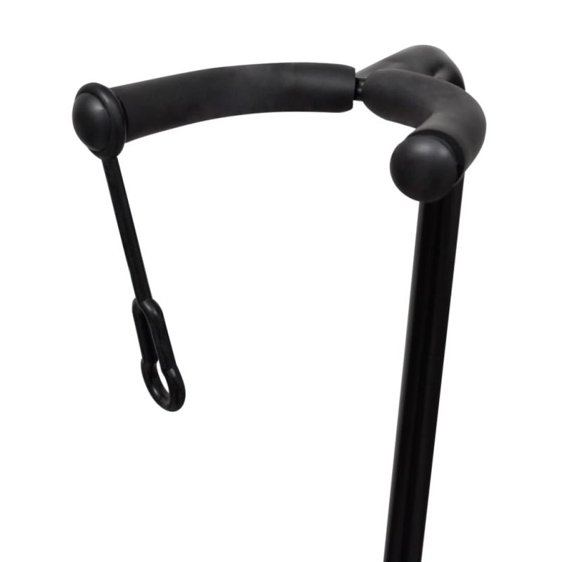 Изработена от качествена стомана, тази регулируема стойка за китара е идеална за поставяне на всички видове китари. Създадена с тежка конструкция, тази стойка за китара е проектирана за години употреба. Подвижният колан ви позволява да настроите стойката до желаната височина, което я прави идеална за всяка китара. Благодарение на омекотените опори за грифа и долната поставка, няма опасност китарата да се повреди. Гумените противоплъзгащи капачки не само предпазват пода от драскотини, но също така осигуряват допълнителна опора. Сгъваемият дизайн осигурява лесна преносимост и по-добро съхранение.