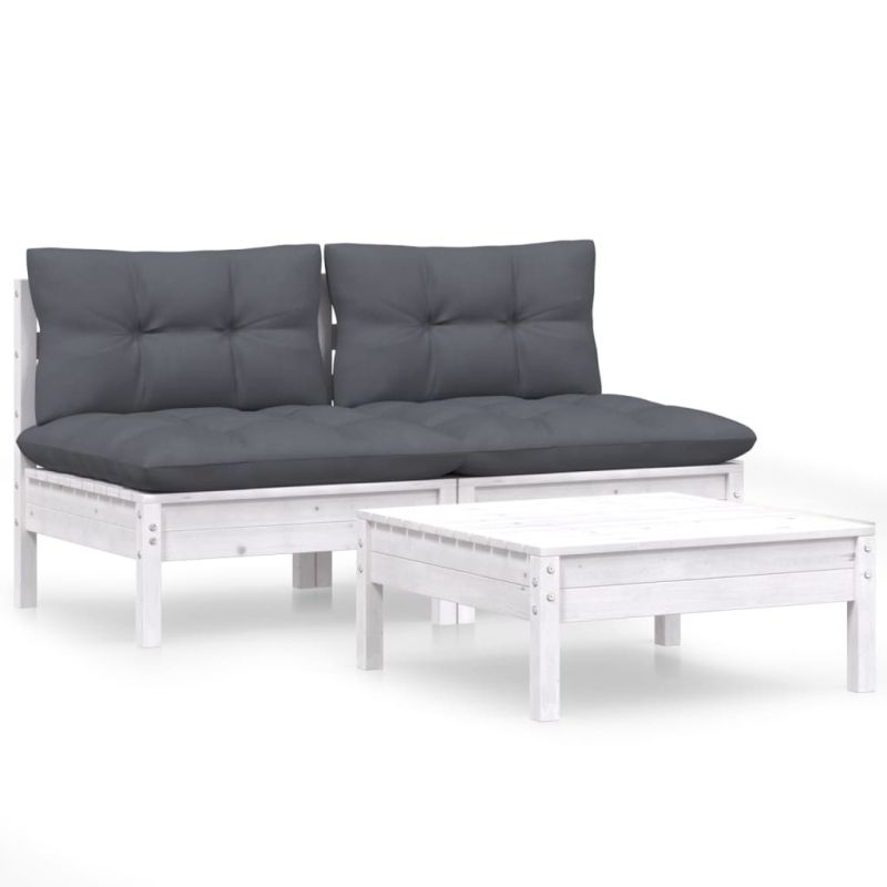 Градински лаундж комплект с възглавници антрацит, 3 части, бор